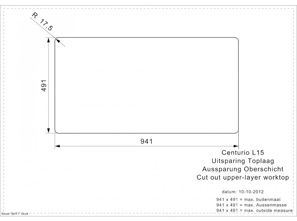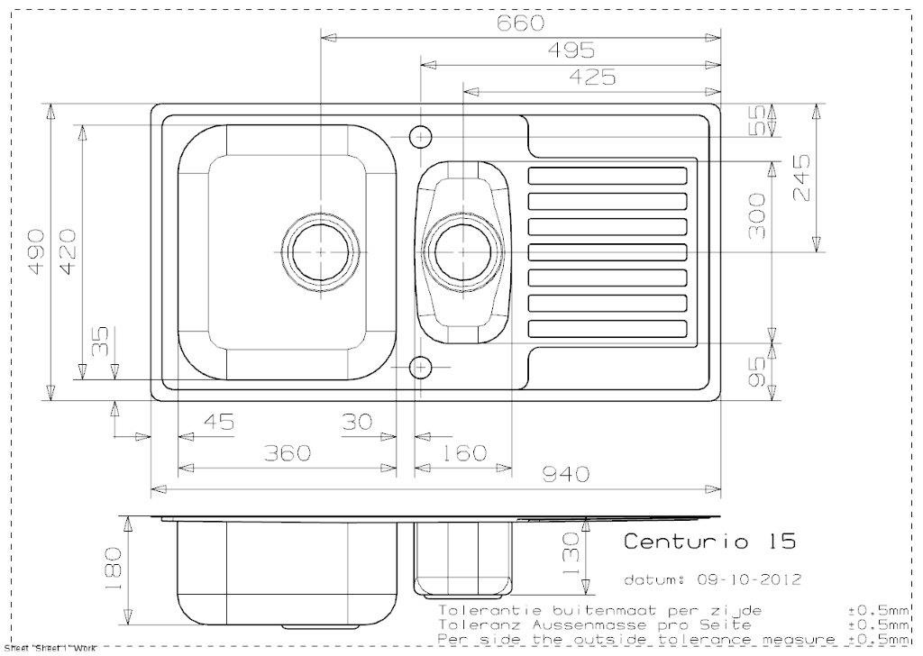 CENTURIO L 30, double bowl with drainer, integrated sink with no tap holes