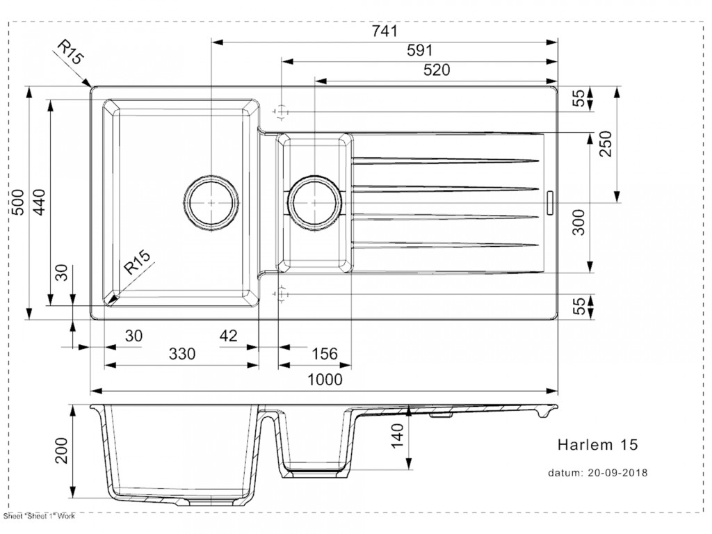 HARLEM 15 CS, 1.5 Bowl Cream Granite Sink