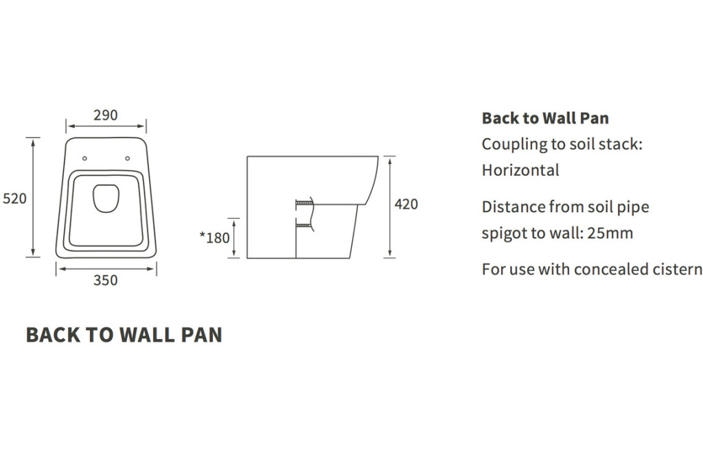 - Distance from soil pipe spigot to wall: 25mm