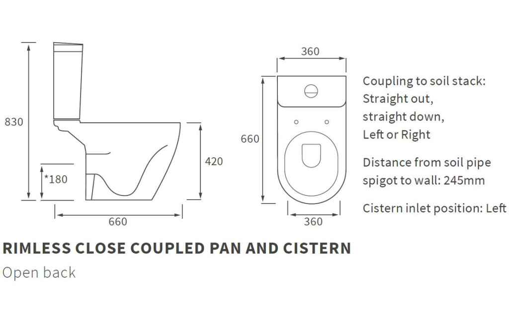 - Distance from soil pipe spigot to wall: 245mm