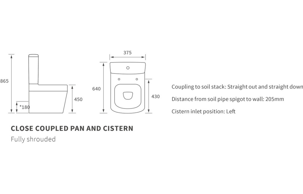- Distance from soil pipe spigot to wall: 205mm