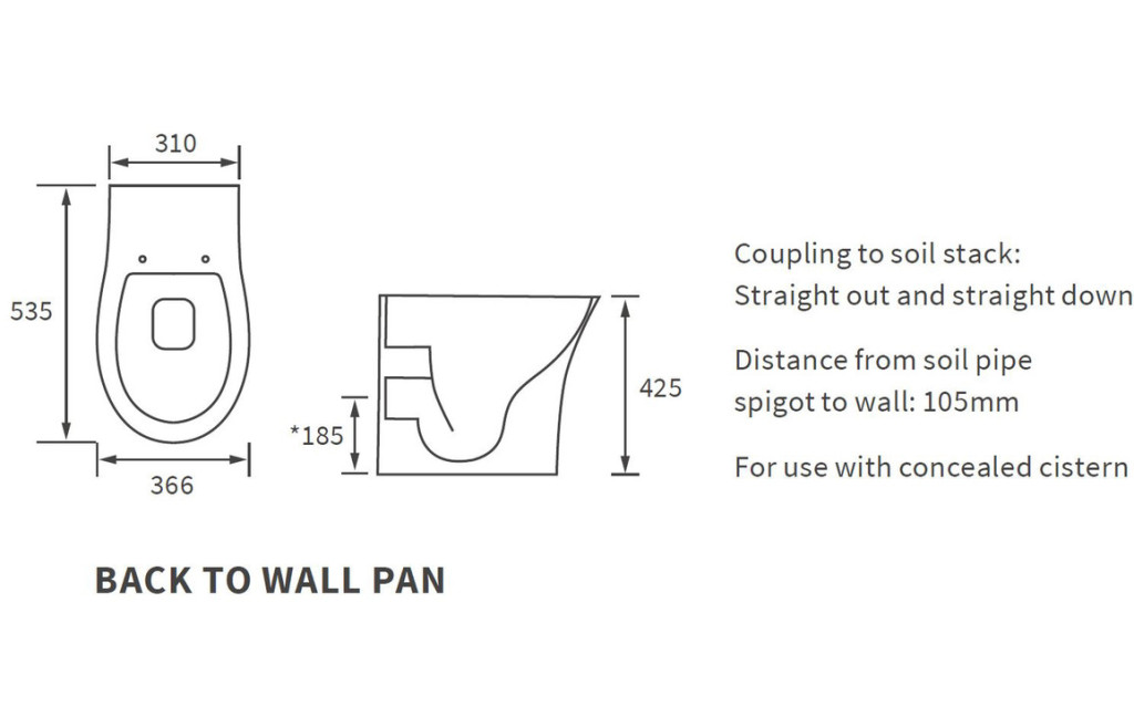- Distance from soil pipe spigot to wall: 110mm