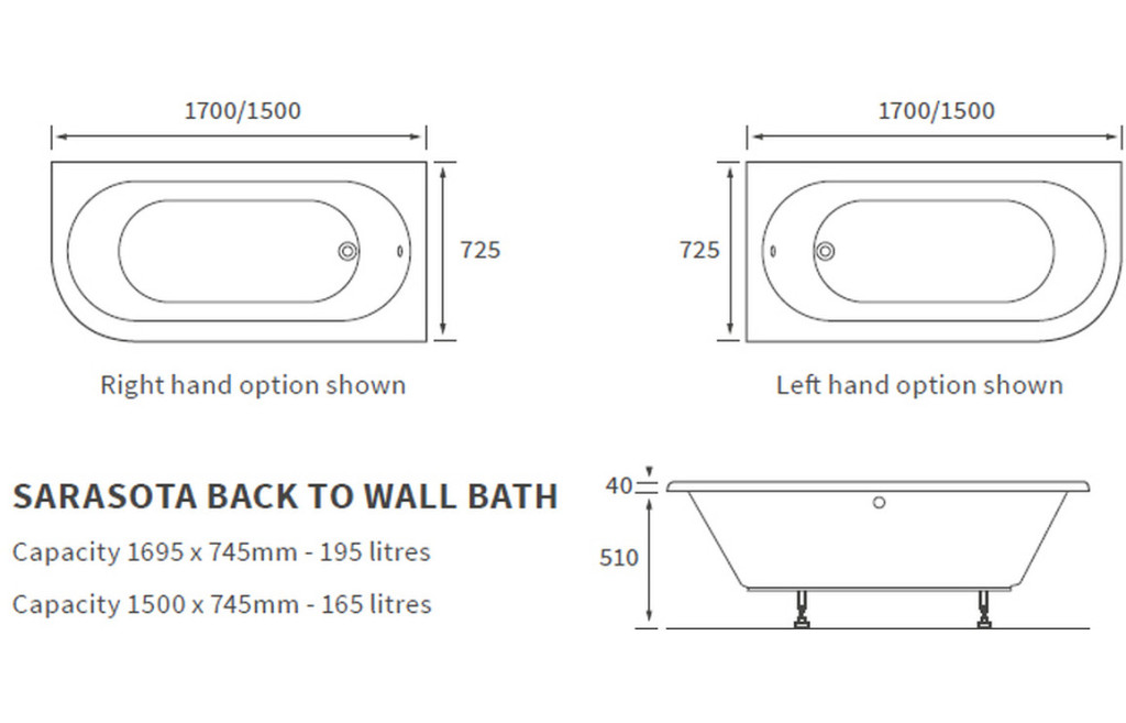 Pearl L Shape Supercast 1700X850X560mm 0 Tapholes Shower Bath Pack - Right Handed