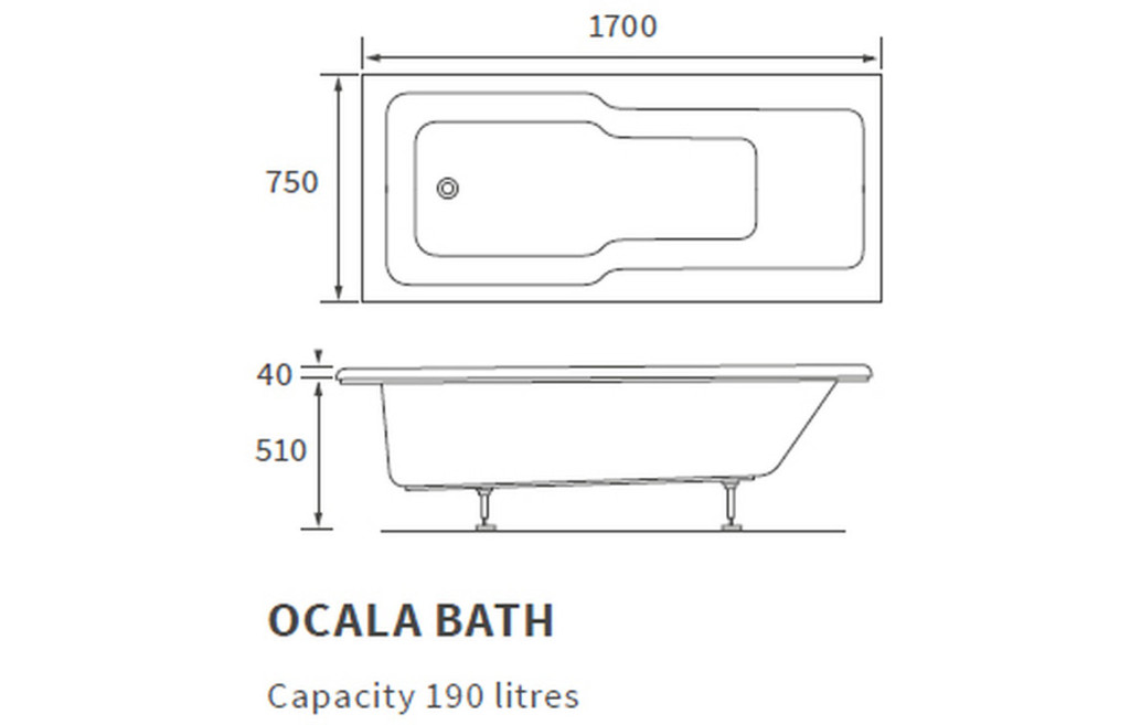 Pearl L Shape Supercast 1700X850X560mm 0 Tapholes Shower Bath Pack - Right Handed