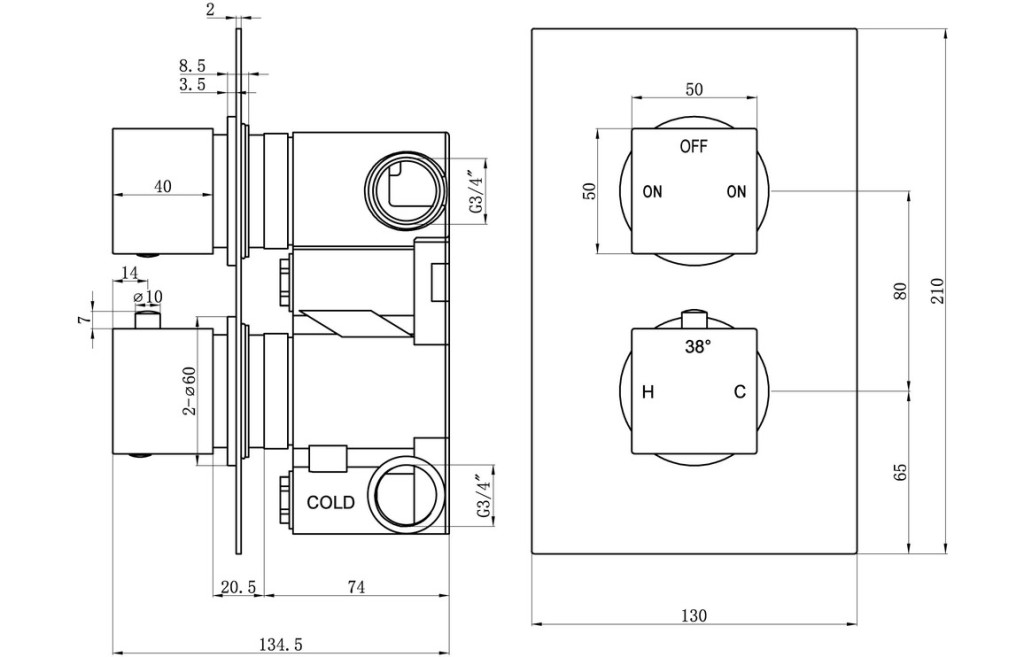 - Dimensions: Height 210 x Width 130 x Depth 134mm