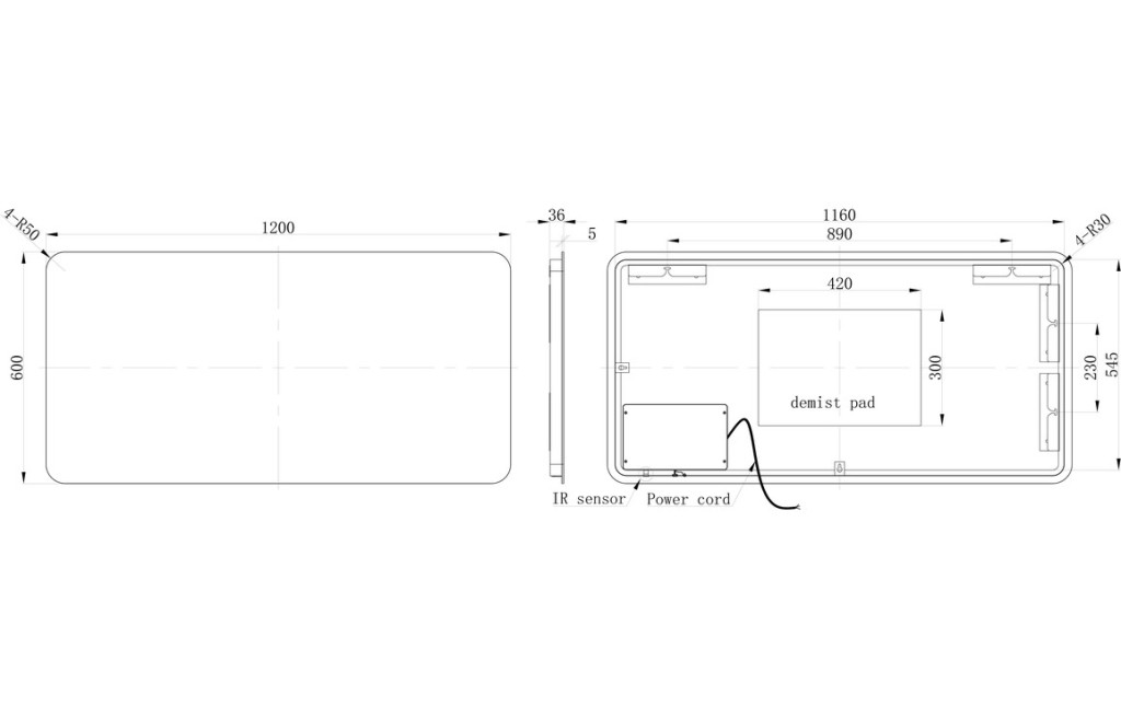 - Dimensions: Height 600 x Width 1200 x Depth 35mm