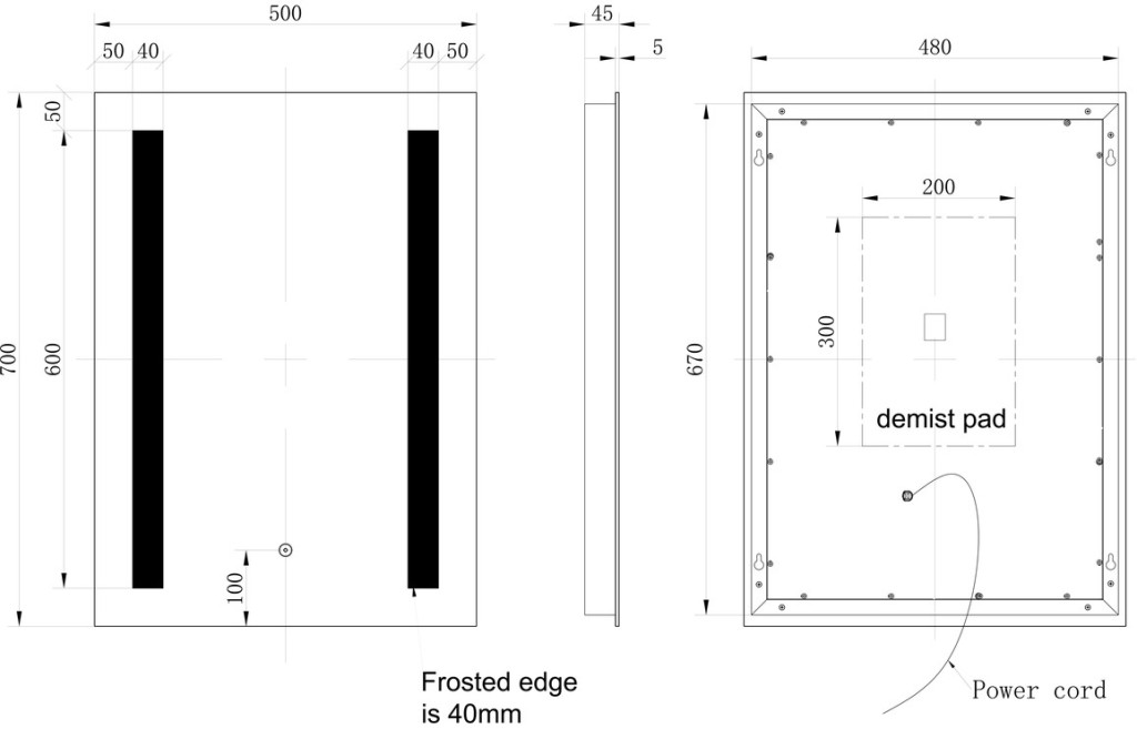 - Dimensions: Height 700 x Width 500 x Depth 45mm