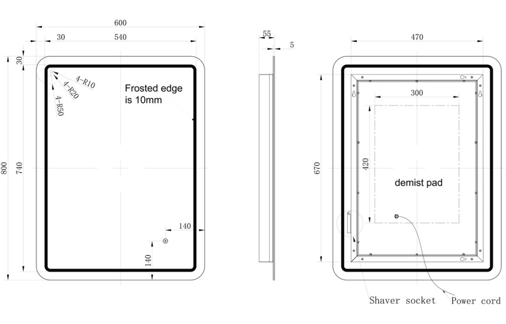 - Dimensions: Height 800 x Width 600 x Depth 55mm