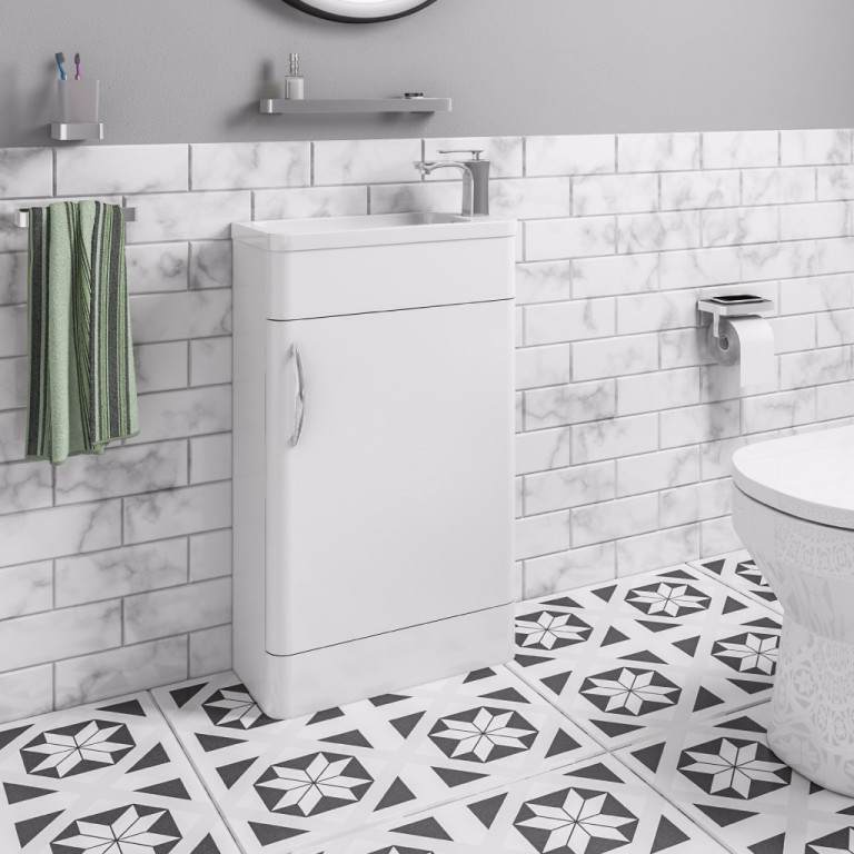 Cavone 50cm x 22cm Cloakroom Basin with Overflow - Gloss White - (Vanity unit & Tap...