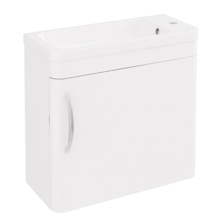 The Cavone bathroom furniture features a luxurious curved basin that flows perfectly with the curved lines of the doors of the vanity unit. Features soft close doors, interchangeable chrome or black handles, built in overflow.Unit only, basin sold separately.