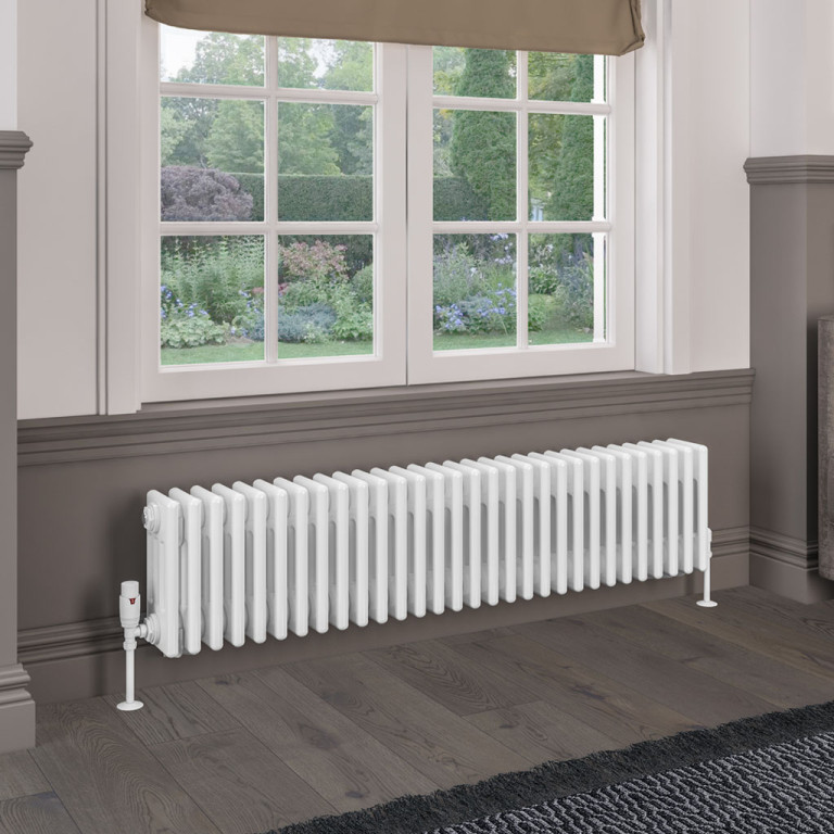 A traditional radiator which will give a Victorian touch of authenticity to any room but will also create an elegant look to a contemporary interior. This radiator boasts high outputs to ensure the whole room is warm. Comes with the options of traditional feet and available in gloss white and matt anthracite finishes.