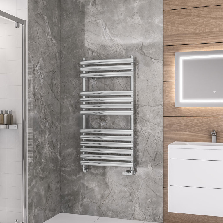 The stunning towel rail that is created with elliptical shaped tubes that are placed horizontally. Available in multiple colour choices including chrome.
