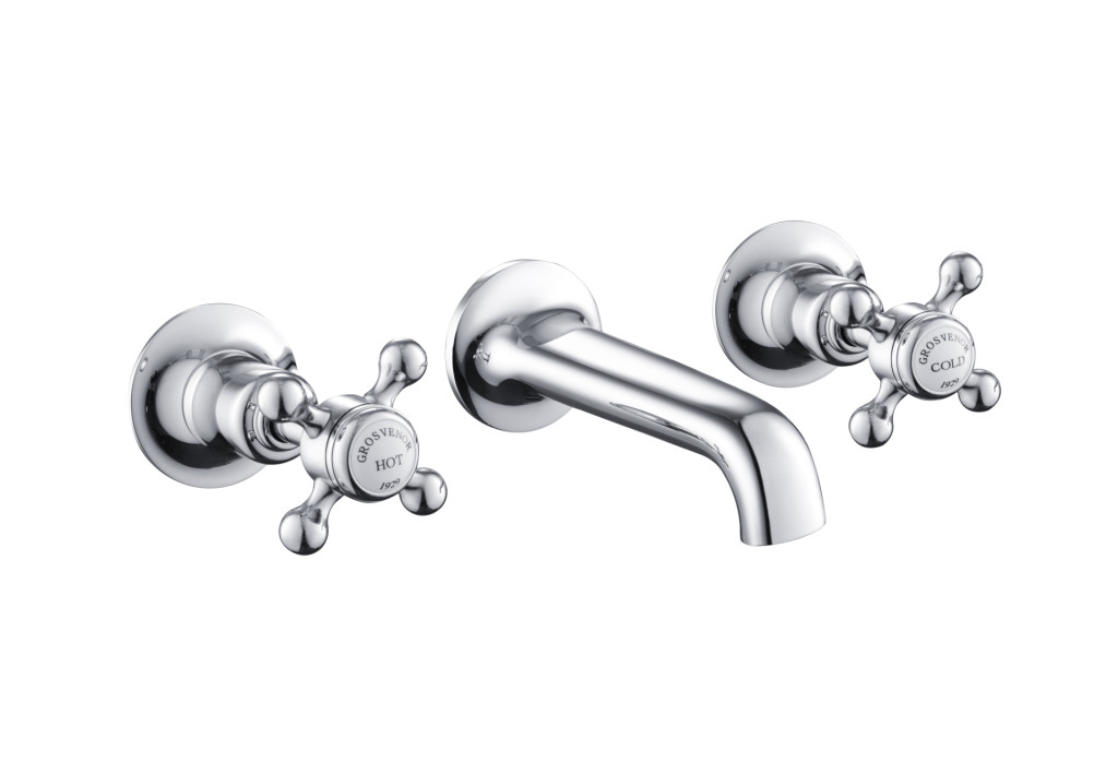 Grosvenor Cross 3 Hole Wall Mounted Basin Mixer With Spout - Antique Brass