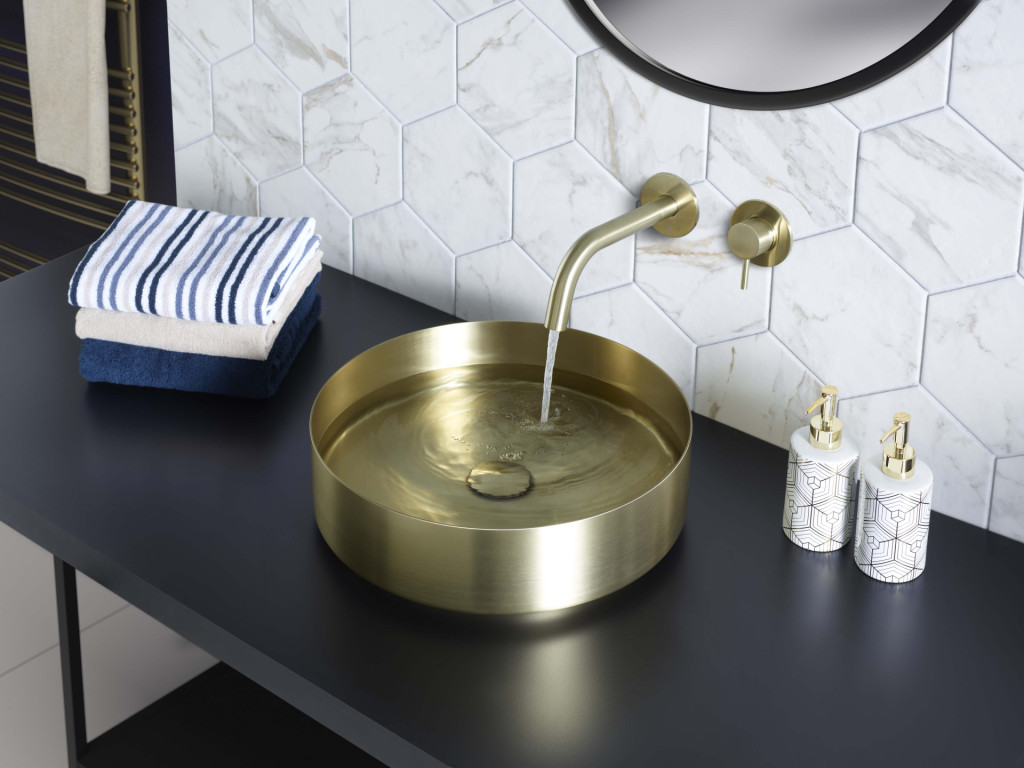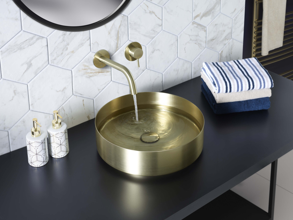 Rectangle Bench Basin With Unslotted Basin Waste - Brushed Brass