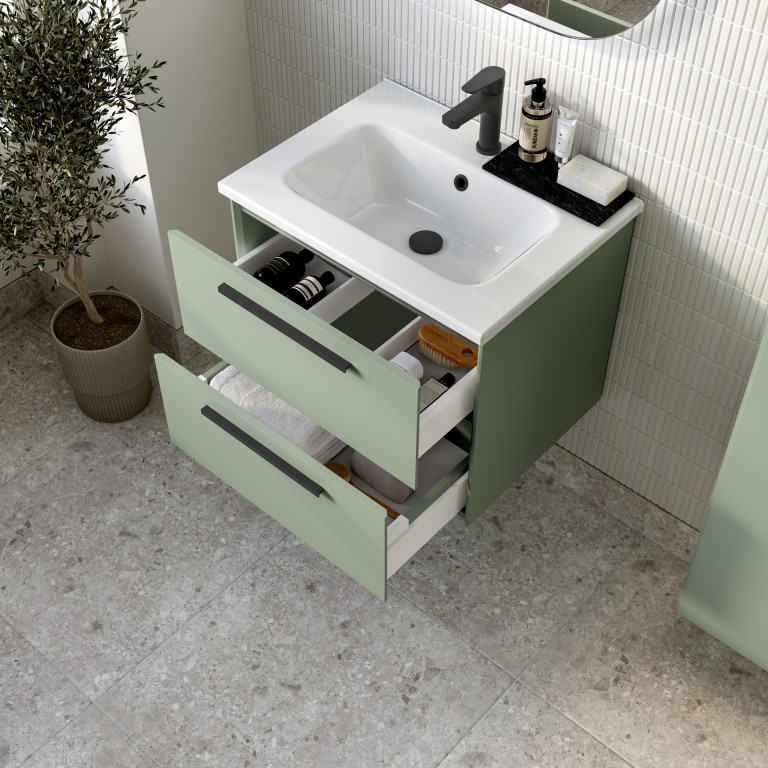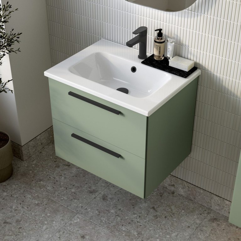 - Berwick 600mm two-drawer wall-hung vanity unit.
