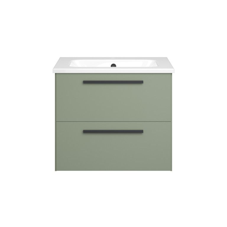 Berwick 2 Drawer Vanity 600mm with Ceramic Basin and Matt Black Handles - Orchid White