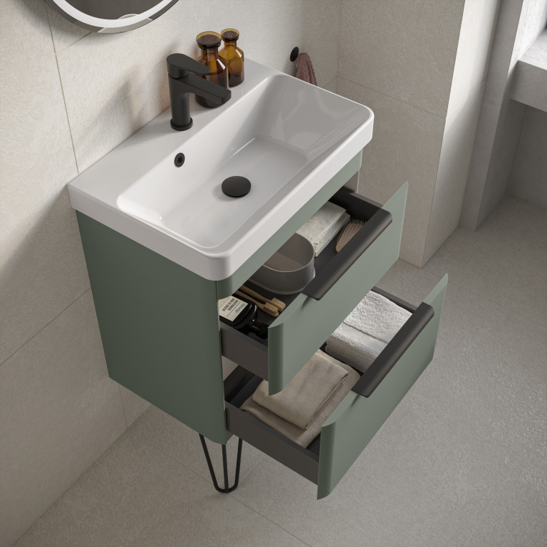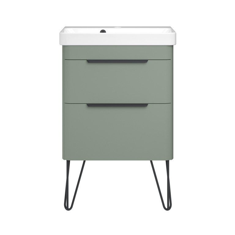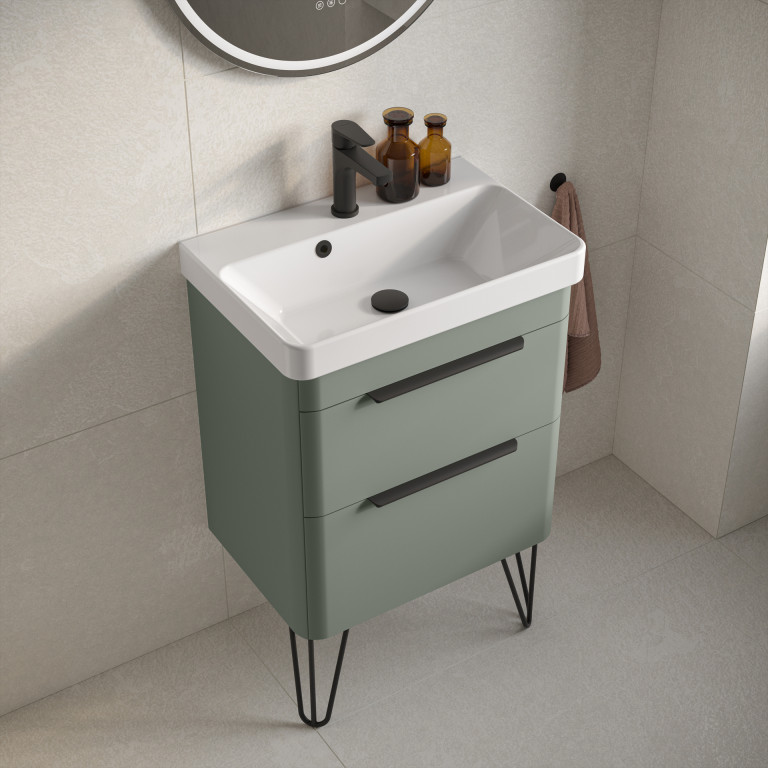 Crofton 2 Drawer Vanity 550mm with Ceramic Basin, Matt Black Loop Legs and Handles -...
