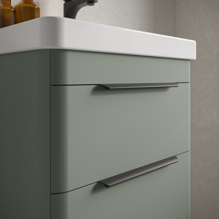 Crofton introduces a sleek and modern aesthetic with its gracefully rounded contours, a charming soft-matt finish and thoughtful features. Silent-close drawers ensure a smooth operation, while over-drawer handles contribute to Crofton’s clean and modern appearance. The ceramic basin complements the vanity's design and offers a durable and easy-to-clean solution for daily use, providing a sophisticated and functional addition to your bathroom.