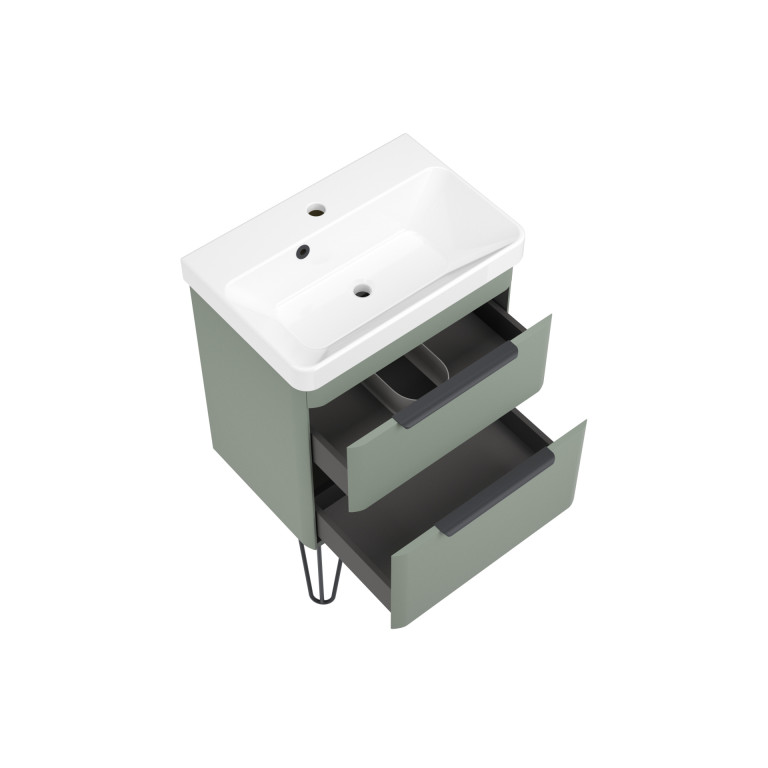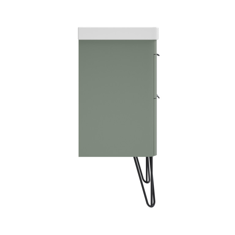 Crofton 2 Drawer Vanity 550mm with Ceramic Basin and Brushed Brass Handles - Verdant Green