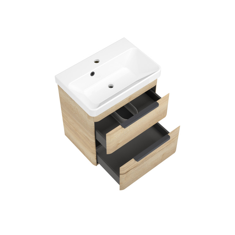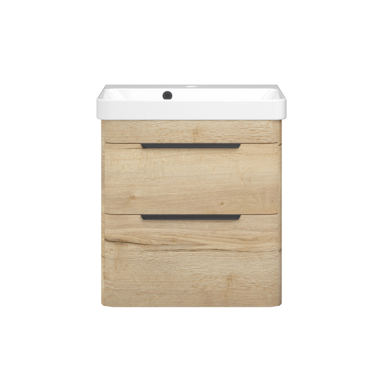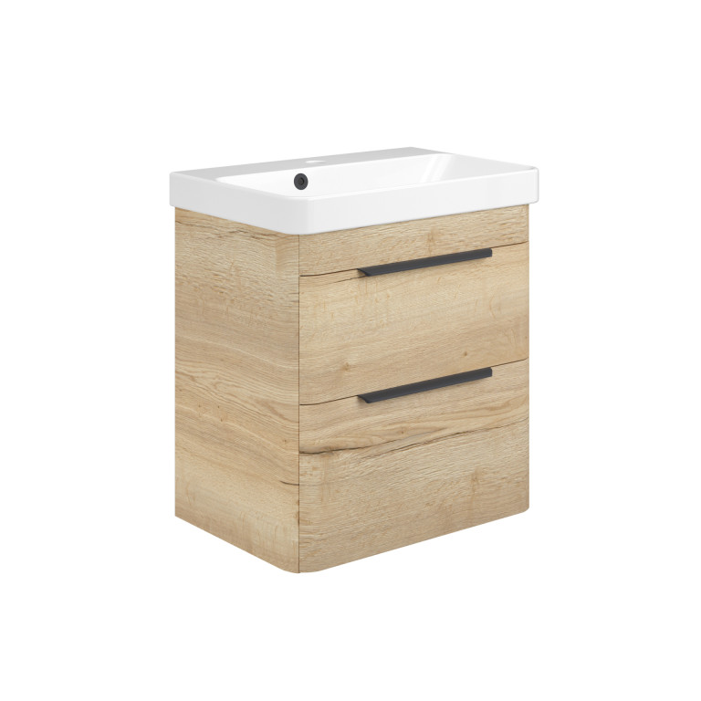 Crofton 2 Drawer Vanity 550mm with Ceramic Basin and Chrome Handles - Light Oak