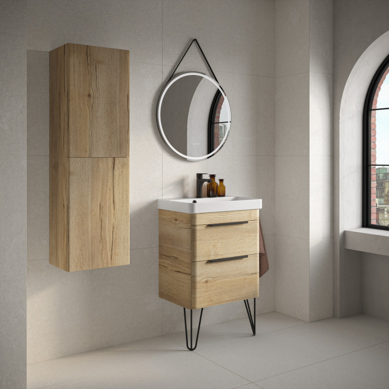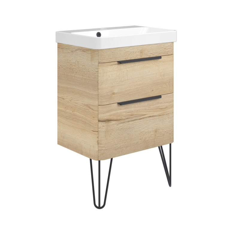 Crofton 2 Drawer Vanity 550mm with Ceramic Basin and Chrome Handles - Light Oak