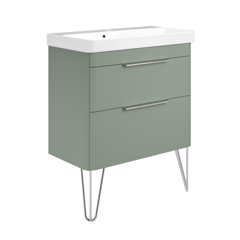 Crofton 2 Drawer Vanity 700mm with Ceramic Basin, Chrome Loop Legs and Handles - Fjord...
