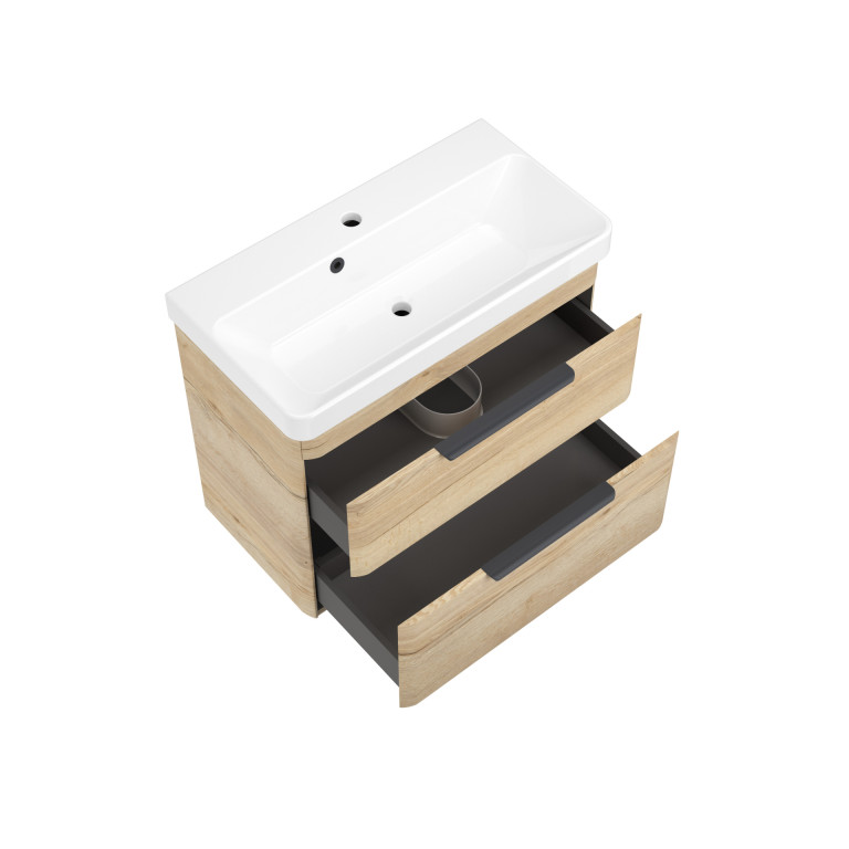 Crofton introduces a sleek and modern aesthetic with its gracefully rounded contours, a charming soft-matt finish and thoughtful features. Silent-close drawers ensure a smooth operation, while over-drawer handles contribute to Crofton’s clean and modern appearance. The ceramic basin complements the vanity's design and offers a durable and easy-to-clean solution for daily use, providing a sophisticated and functional addition to your bathroom.