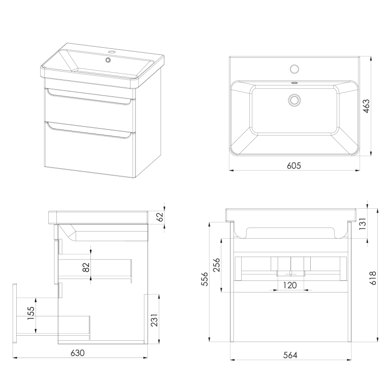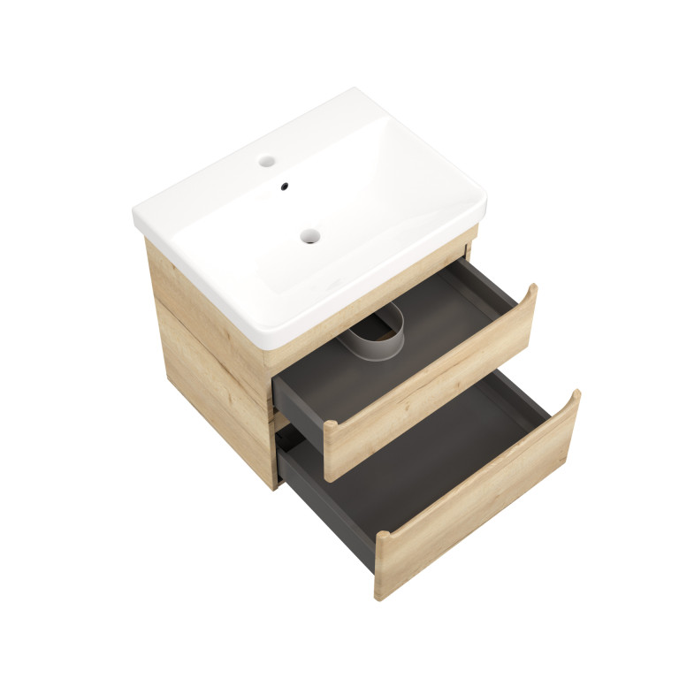 - Bromont 600mm two-drawer wall-hung vanity unit.