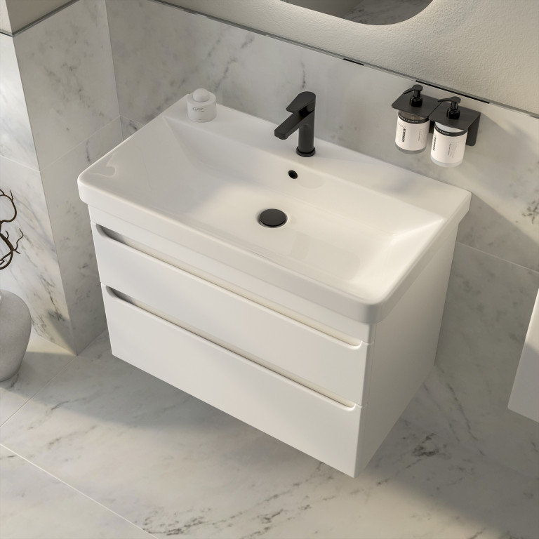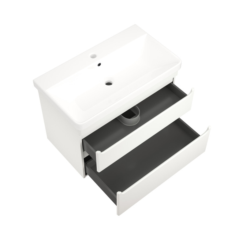 - Bromont 800mm two-drawer wall-hung vanity unit.