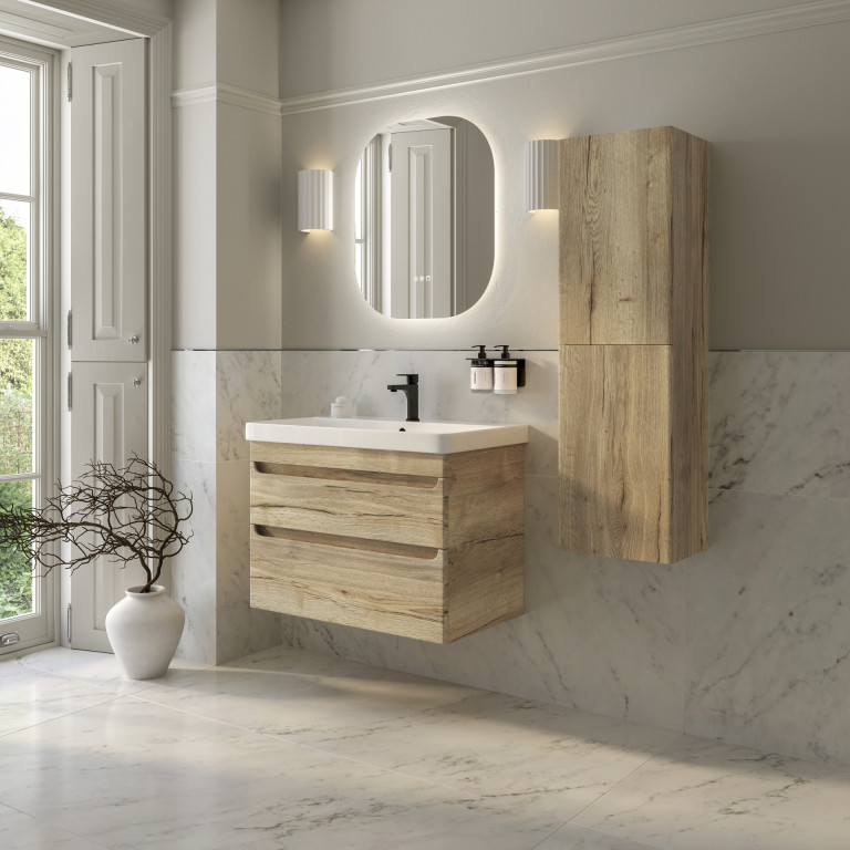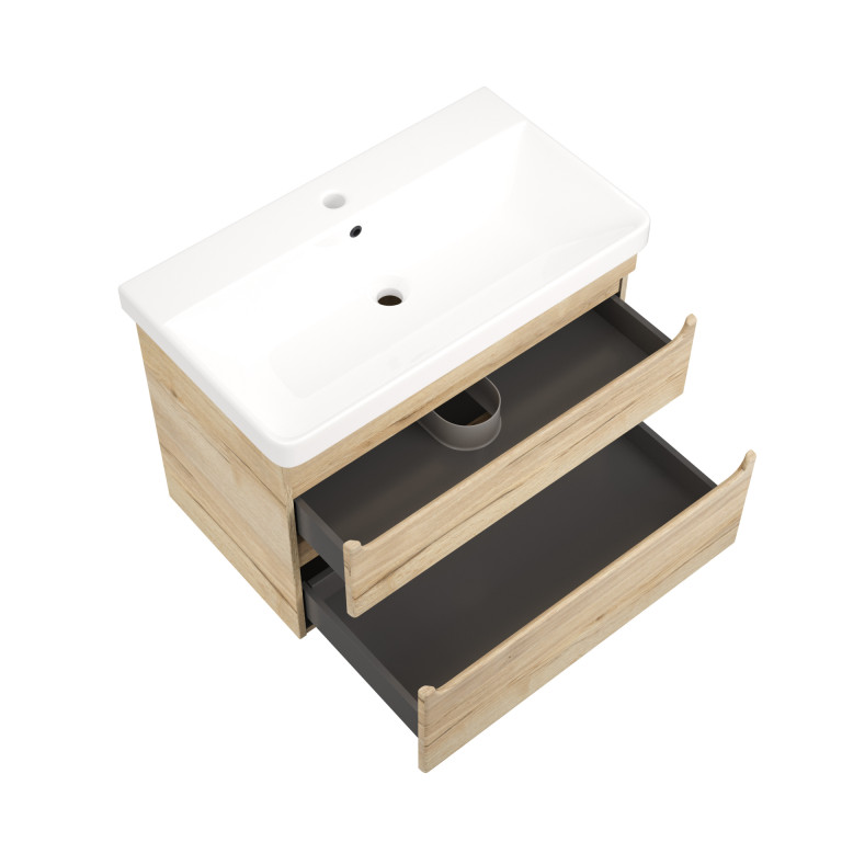 - Bromont 800mm two-drawer wall-hung vanity unit.