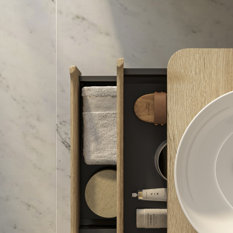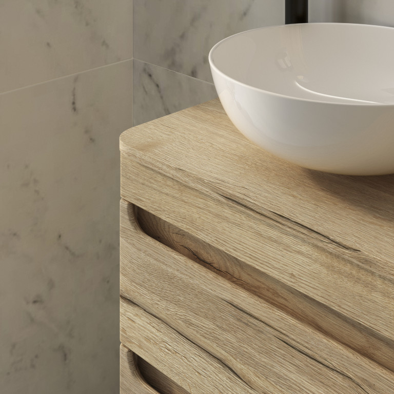 Bromont brings a contemporary feel to any bathroom with its rounded corners, integrated handles and colour-matched worktop. Crafted with an emphasis on material quality, with an easy-to-clean, ceramic bowl, water-resistant matt finish and soft-close drawers. Bromont not only adds a touch of modern elegance to your bathroom but also prioritises functionality and quality.