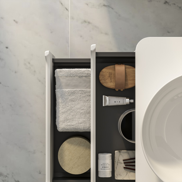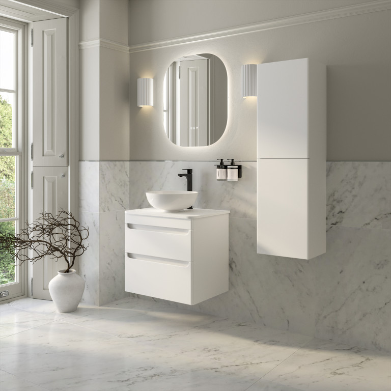 Bromont brings a contemporary feel to any bathroom with its rounded corners, integrated handles and colour-matched worktop. Crafted with an emphasis on material quality, with an easy-to-clean, ceramic bowl, water-resistant matt finish and soft-close drawers. Bromont not only adds a touch of modern elegance to your bathroom but also prioritises functionality and quality.