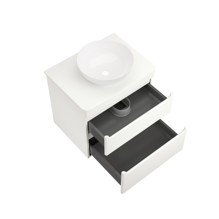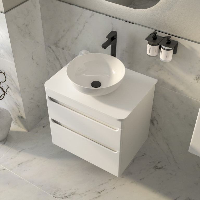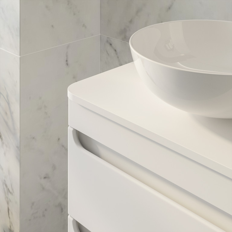 Bromont 2 Drawer Vanity 700mm with Worktop and Ceramic Sit-on Bowl - White Matt