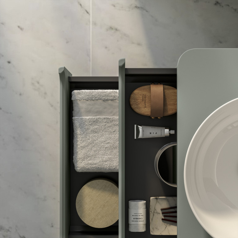 - Sorel sit-on basin with colour-matched worktop.