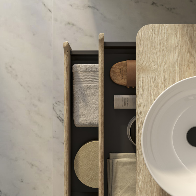 Bromont brings a contemporary feel to any bathroom with its rounded corners, integrated handles and colour-matched worktop. Crafted with an emphasis on material quality, with an easy-to-clean, ceramic bowl, water-resistant matt finish and soft-close drawers. Bromont not only adds a touch of modern elegance to your bathroom but also prioritises functionality and quality.
