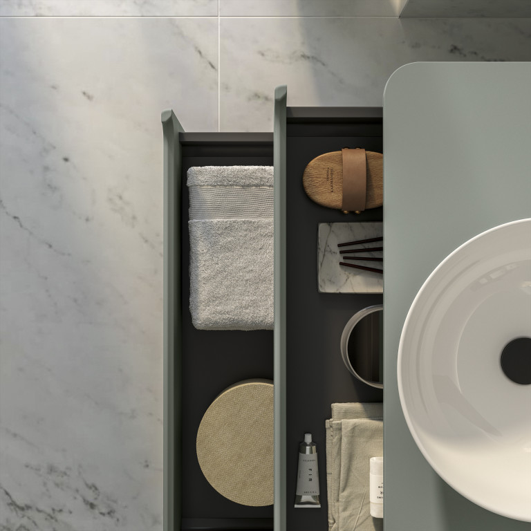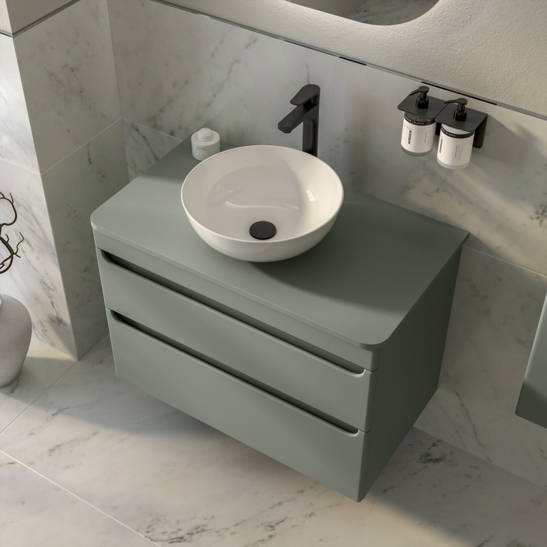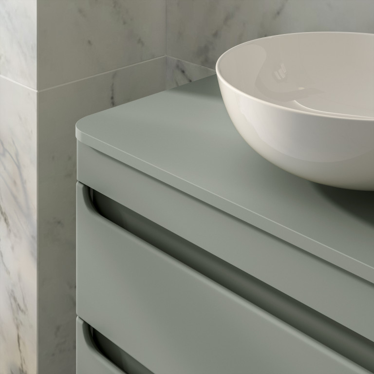 Bromont brings a contemporary feel to any bathroom with its rounded corners, integrated handles and colour-matched worktop. Crafted with an emphasis on material quality, with an easy-to-clean, ceramic bowl, water-resistant matt finish and soft-close drawers. Bromont not only adds a touch of modern elegance to your bathroom but also prioritises functionality and quality.