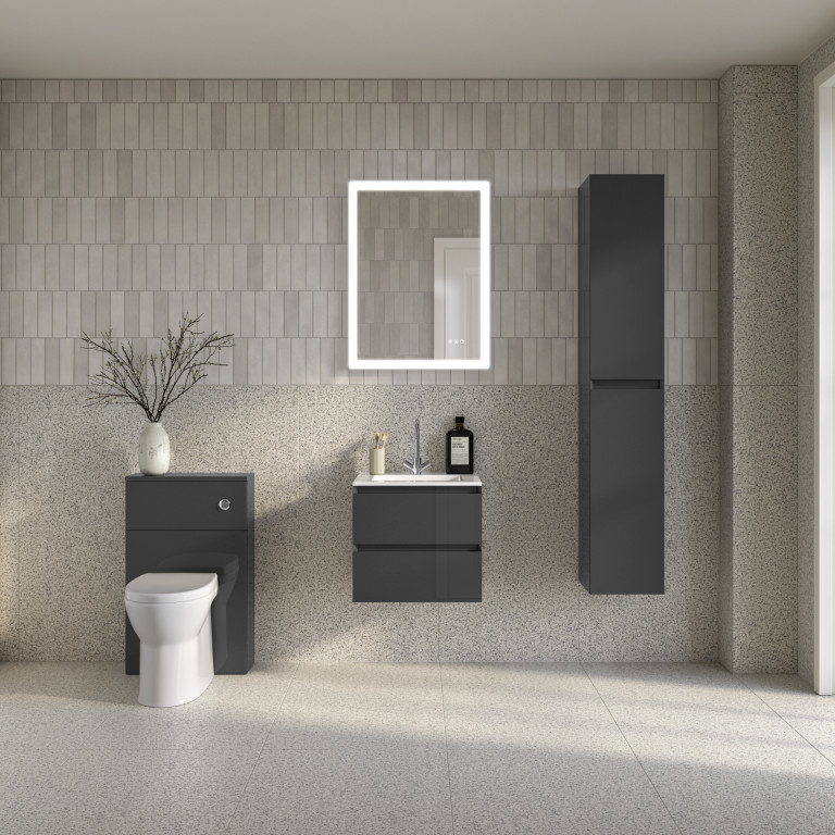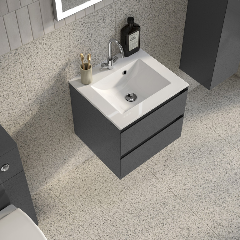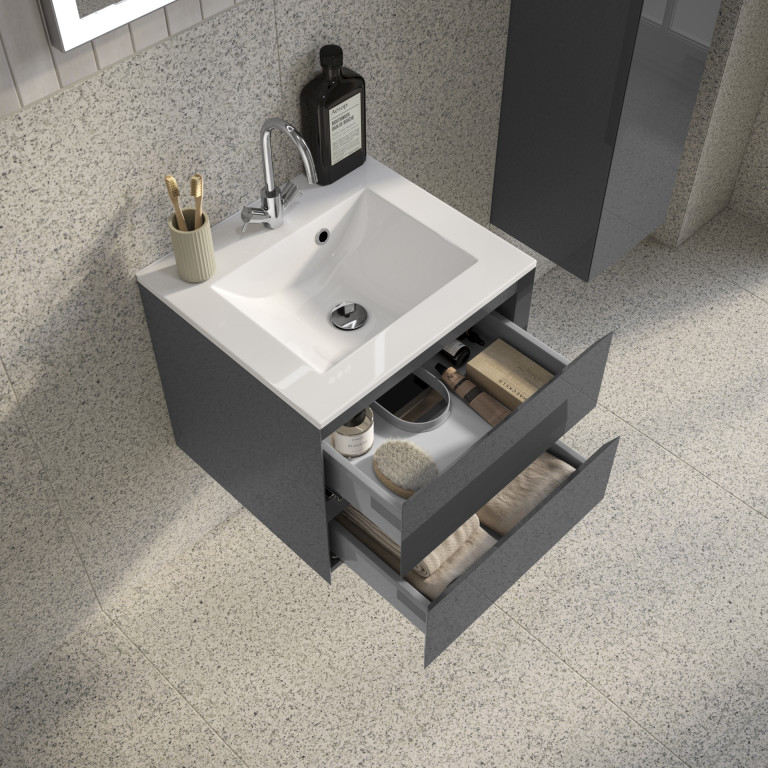 Vernas 2 Drawer Vanity 600mm with Cast Basin - Anthracite Gloss
