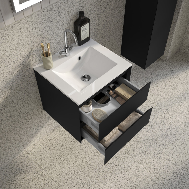 - Vernas 500mm two-drawer wall-hung vanity unit.