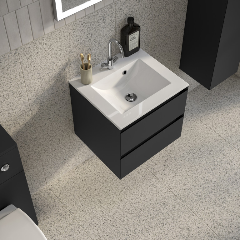 Vernas 2 Drawer Vanity 500mm with Cast Basin - Anthracite Gloss