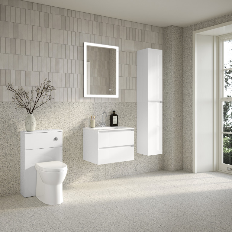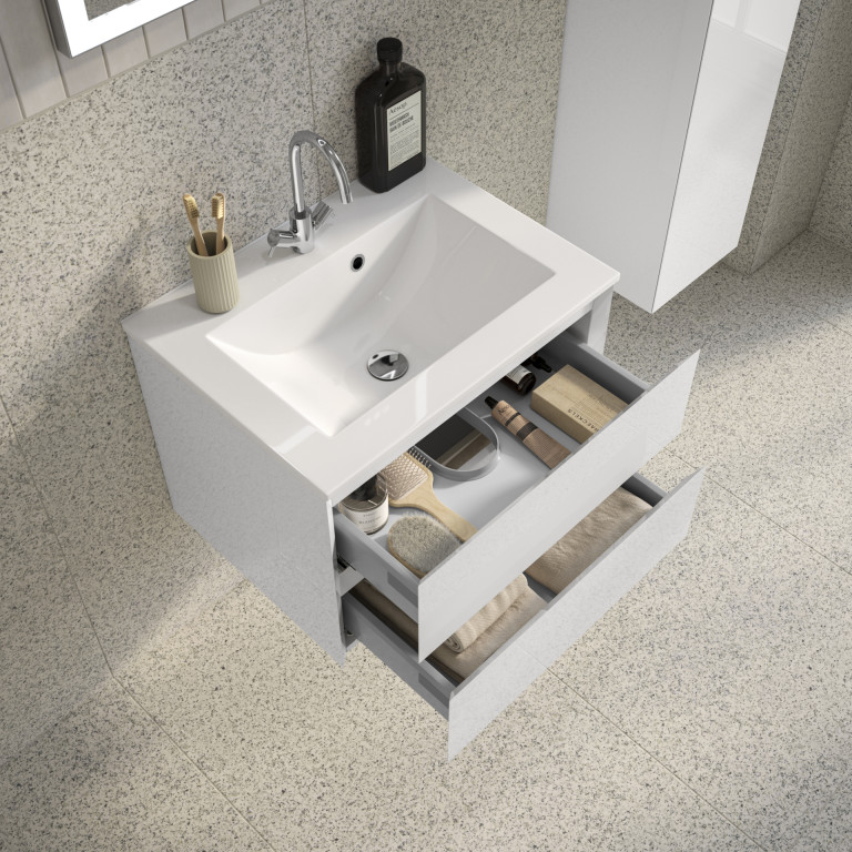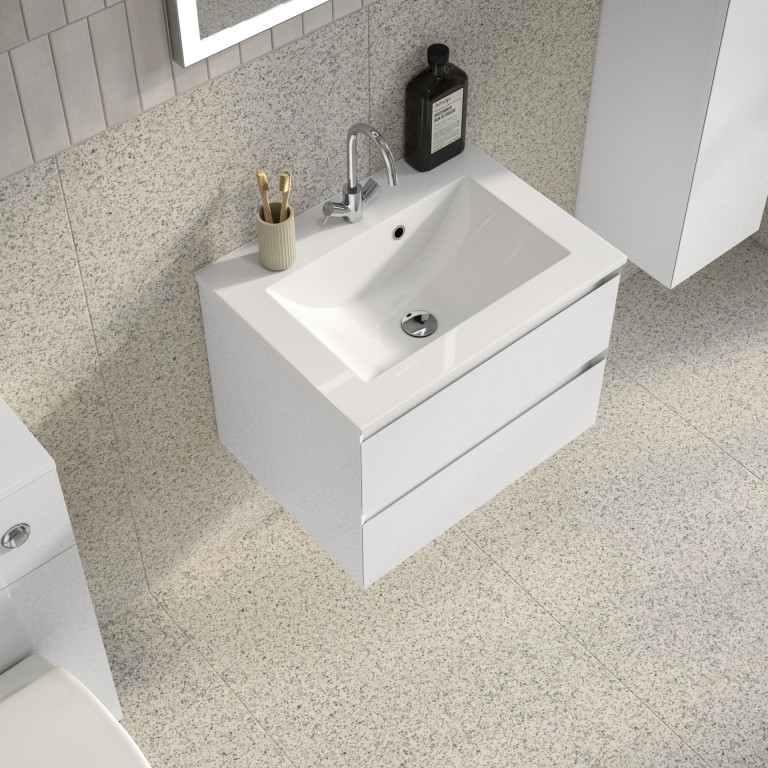 - Vernas 600mm two-drawer wall-hung vanity unit.