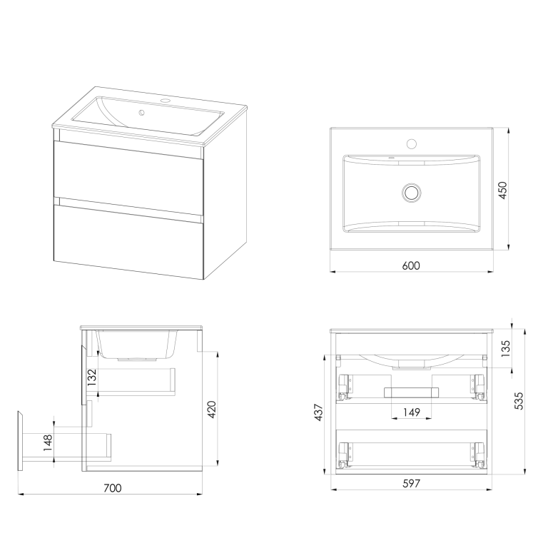 - Vernas 600mm two-drawer wall-hung vanity unit.