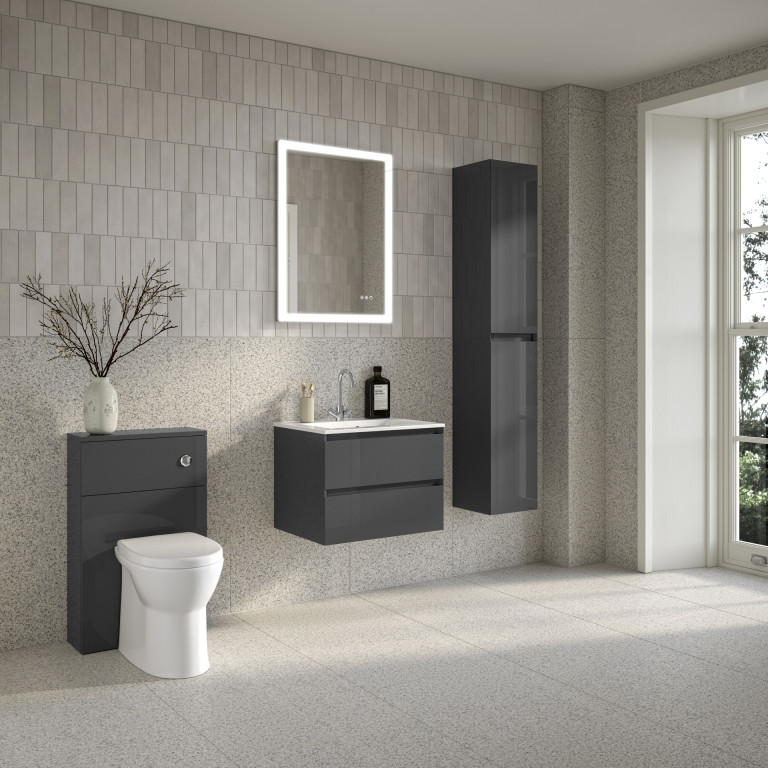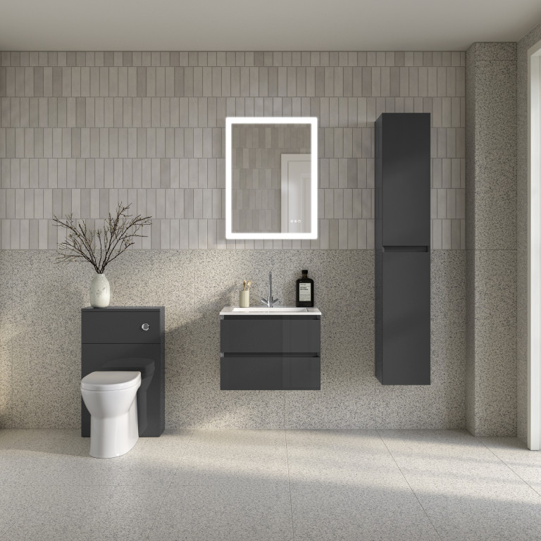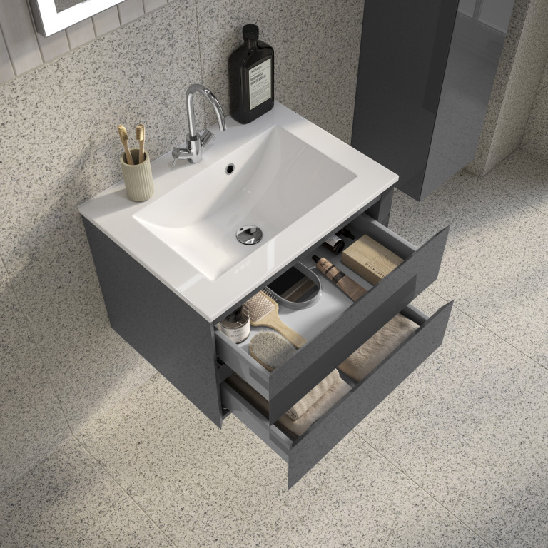 Vernas 2 Drawer Vanity 500mm with Cast Basin - Anthracite Gloss