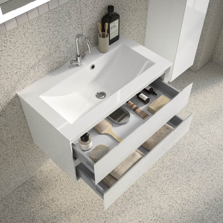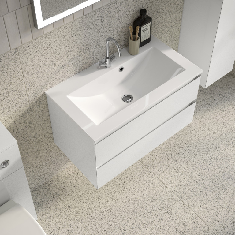 - Vernas 800mm two-drawer wall-hung vanity unit.
