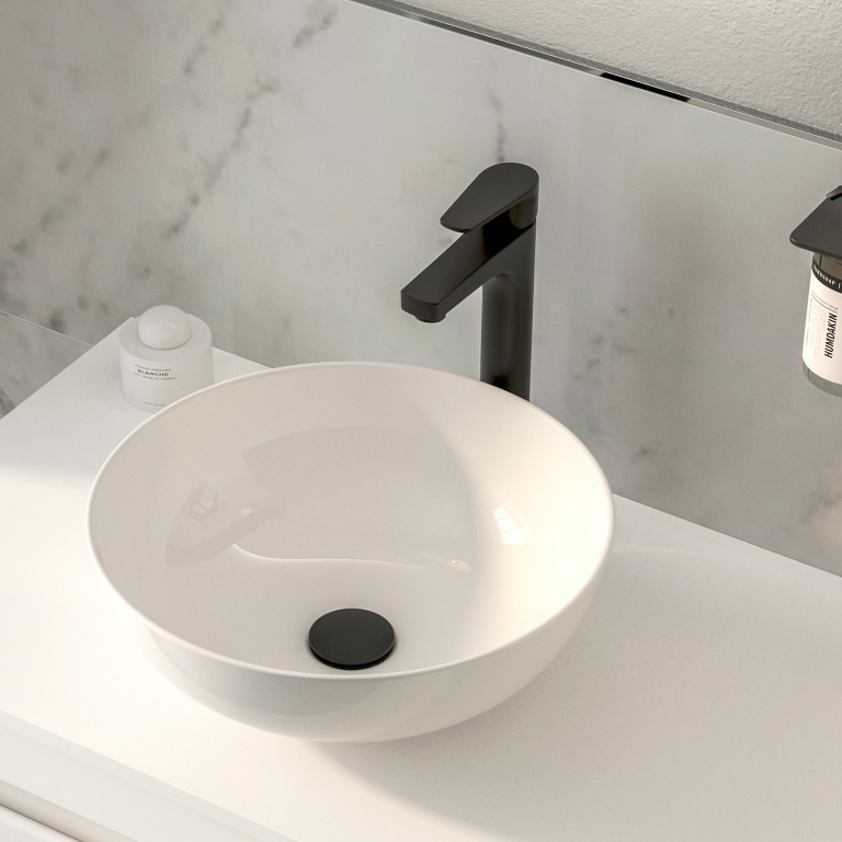 The Alma Tall basin tap is meticulously crafted for precision and engineered for long-lasting durability. Control the ultra-smooth water flow and temperature using the monobloc lever, which features ceramic disc valve technology, ensuring the tap's longevity for years to come. The tap's spout aerator introduces bubbles to the water, maintaining a controlled and distinctive flow pattern while eliminating splashback, and its robust anti-scratch coating guarantees a lasting pristine appearance.