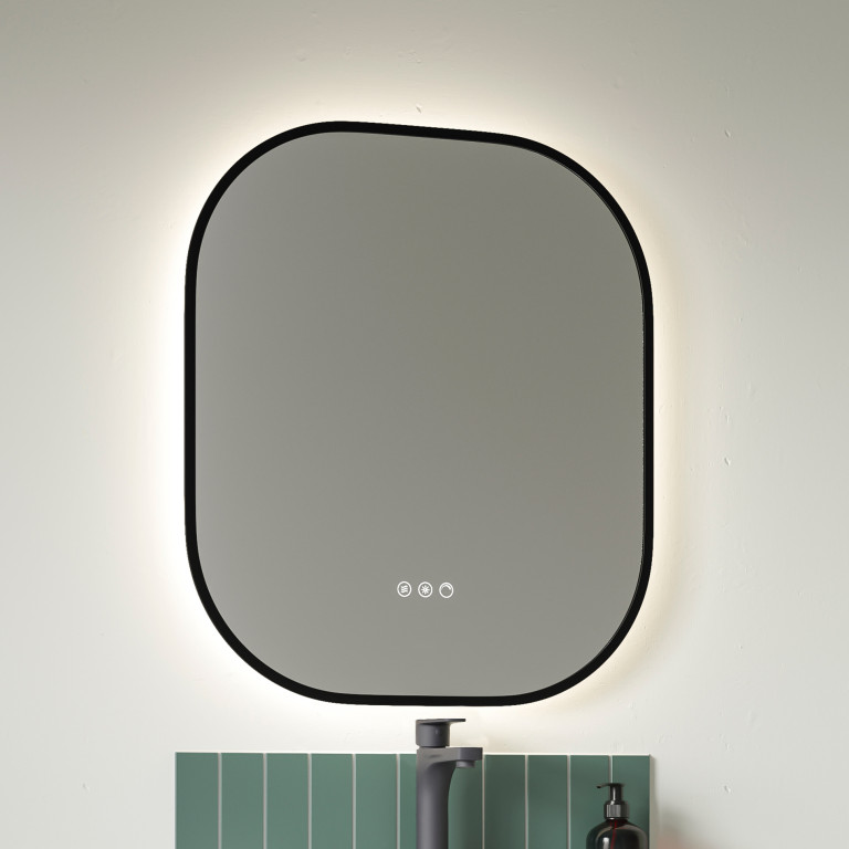 The Ajax mirror features rounded corners and a modern design, adding a touch of contemporary style to your bathroom. Whether you're gearing up for a productive day or unwinding with a relaxing evening bath, this mirror ensures perfect lighting to suit any mood, with touch-sensitive buttons, that enable effortless adjustments to both brightness and lighting temperature. Enjoy a crystal-clear reflection, thanks to its innovative, energy-efficient heated demister pad, ensuring a fog-free surface, even in the most humid bathroom environments.