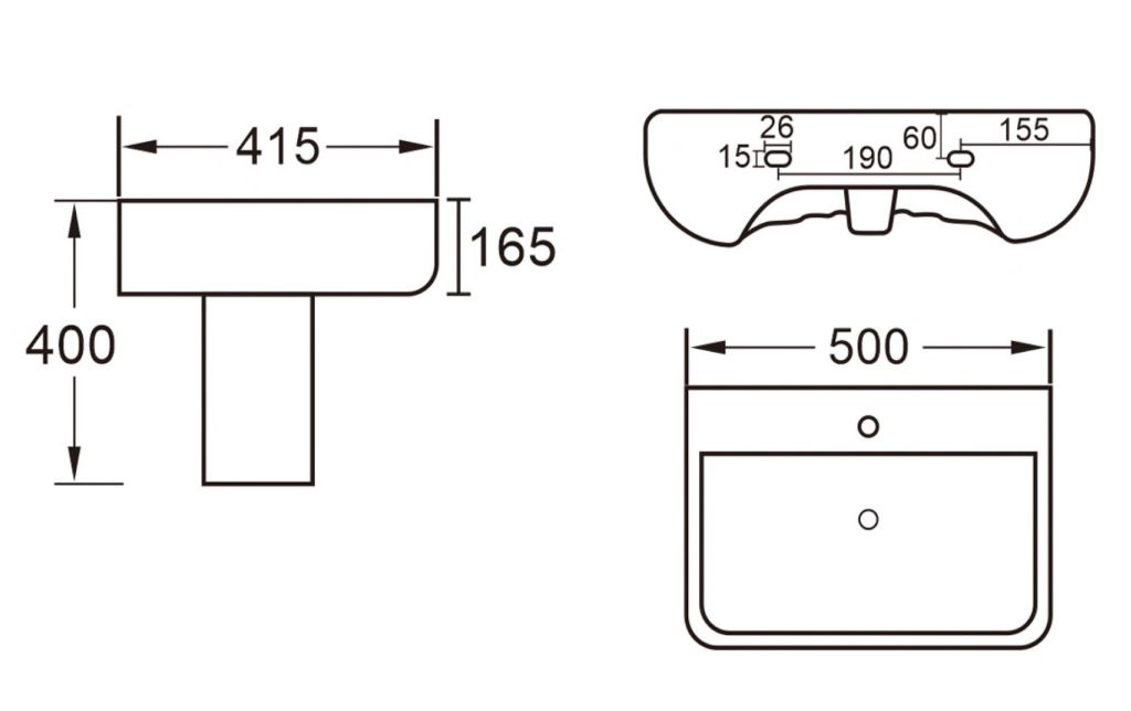 Beddington Basin only, 450mm with 1 Tap Hole - White (Pedestal Sold Separately)