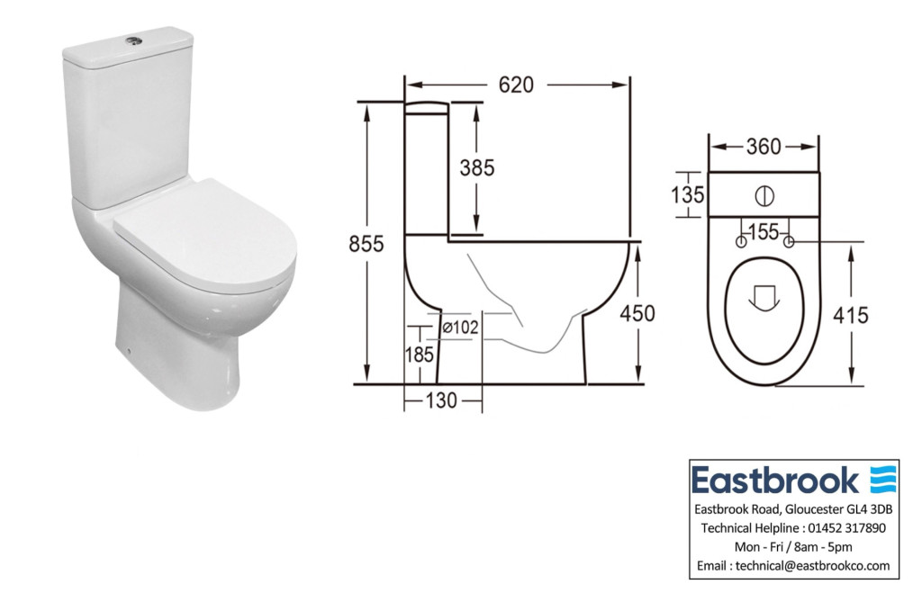 Rimless Dura Comfort Height Close-Coupled Eco Vortex Pan only - White (Cistern & Seat...