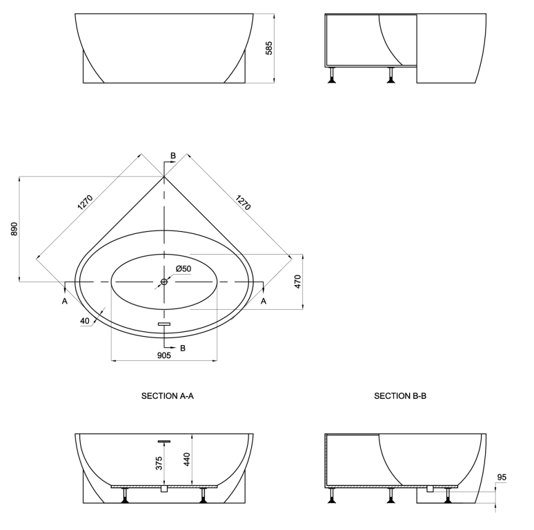 - 1270mm (L) x 1270mm (W) x 585mm (H)
