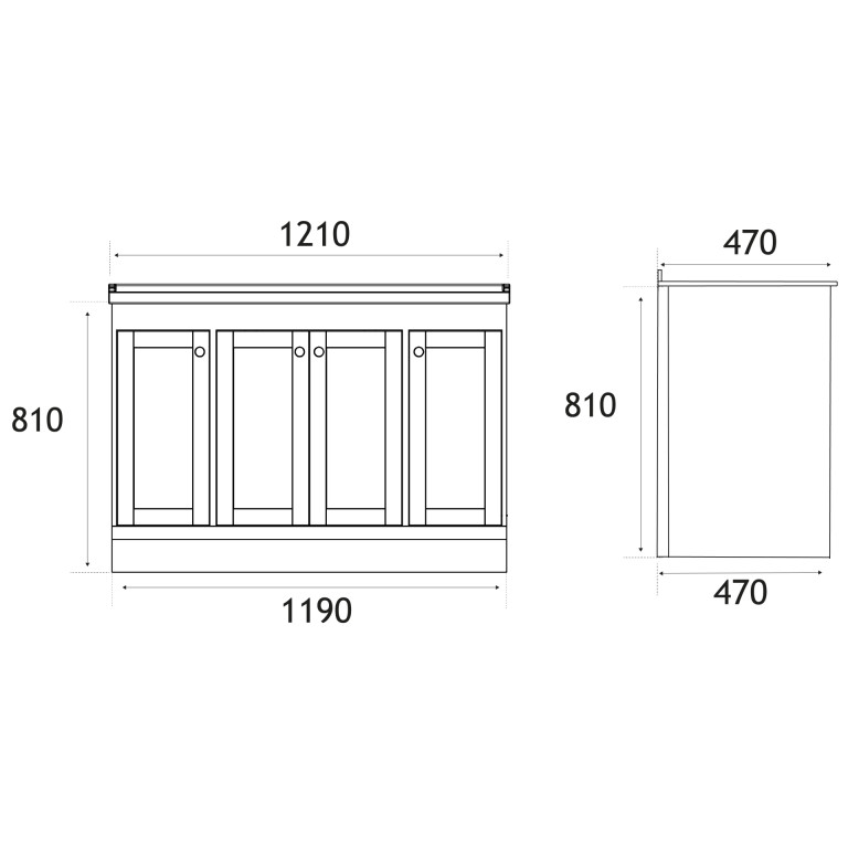 - 460mm (L) x 1190mm (W) x 810mm (H)