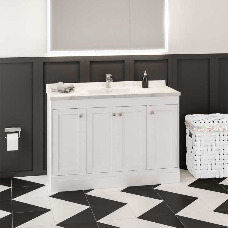 Hardwick Straight 1200mm single bowl Floorstanding Vanity Unit only - Matt White (Basin...